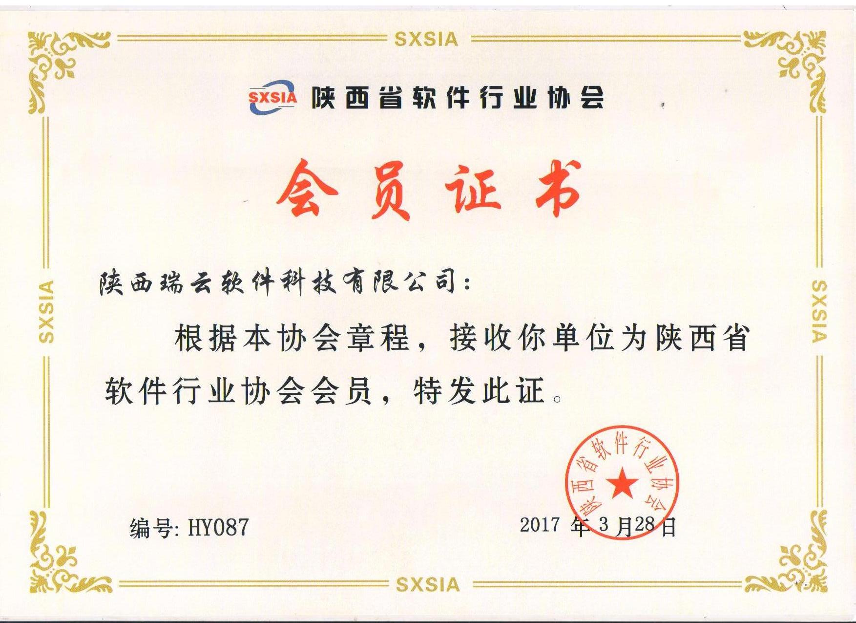 3月28日,瑞云软件通过陕西省软件行业协会严格资格审查,正式成为陕西省软件行业协会会员。会员编号:HY087。